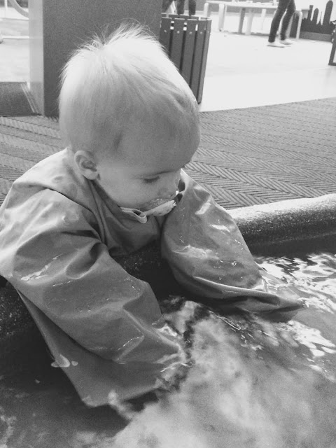 (Today we went to the Children's Museum and I put him in one of their smocks and let him play in a similar water feature, only to stop him about 30 seconds in because he'd already soaked his clothes through the smock...and today was decidedly not 70 degrees out.)